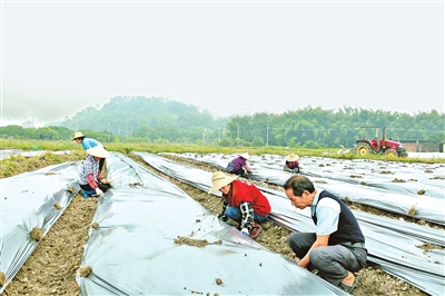 1月20日上午,新兴县六祖镇水湄村红荣种植专业合作社的种植基地里人头涌动,沟畦纵横,社员们或在平整土地起垅、或在覆盖农用黑膜,进行着种植黑美人西瓜的准备工作,一派热火朝天的忙碌景象。当天是二十四节气中最后一个节气“大寒”。(通讯员 黎居雄 摄影报道)