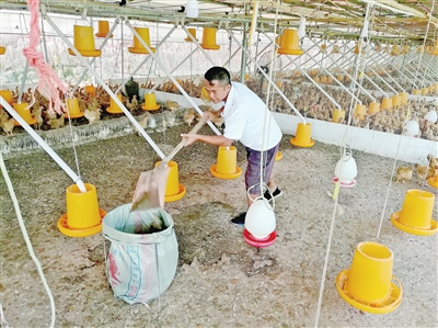 “自精准扶贫开展以来,在政府的帮扶下,我有了自己的养鸡场,空闲时候还到村综合种养小区帮忙做工,一个月有2000多元,现在收入高了,生活稳定好多,我们全家脱贫奔康就在眼前。”在平台镇平台村,正在自己养鸡场投喂饲料的贫困户谢郁恒开心地对记者说。