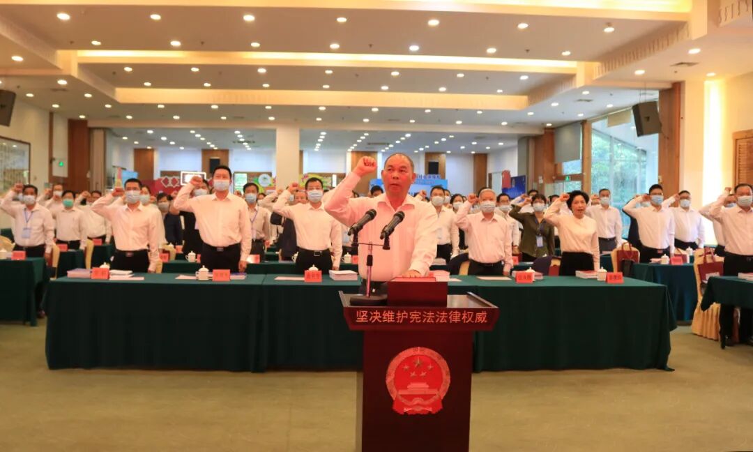 活动现场进行了宪法宣誓,市人大常委会副主任苏培芬领诵誓词,参加活动的全体人员举起右手,跟诵誓词,庄严宣誓。