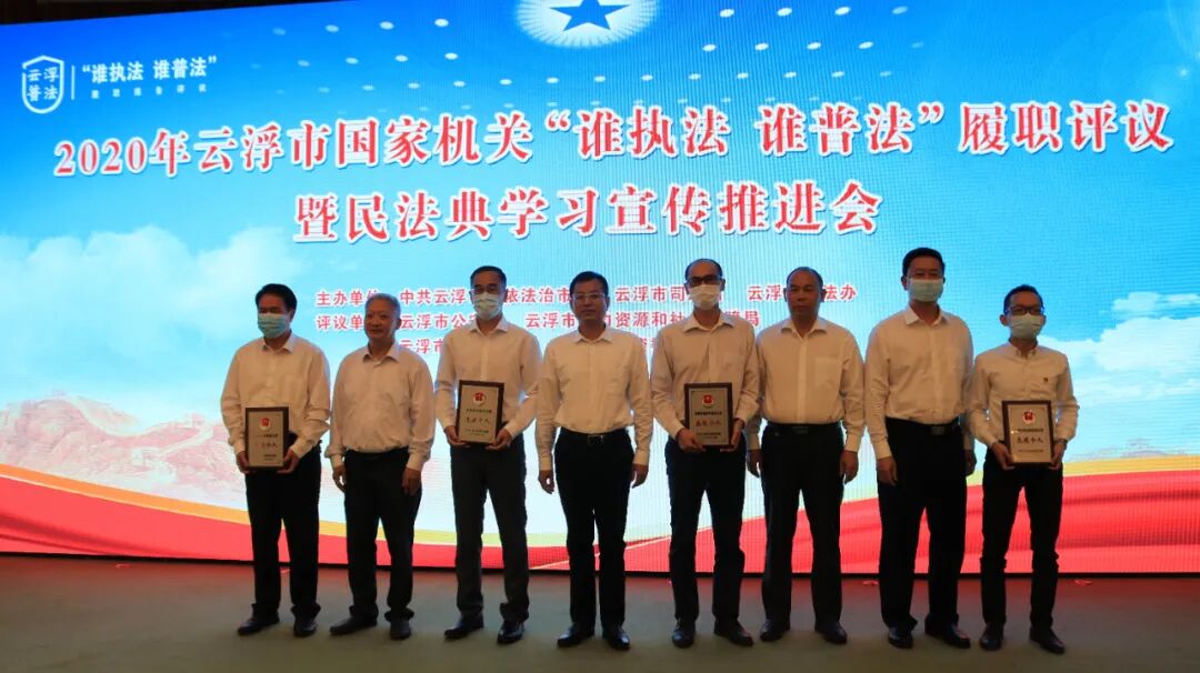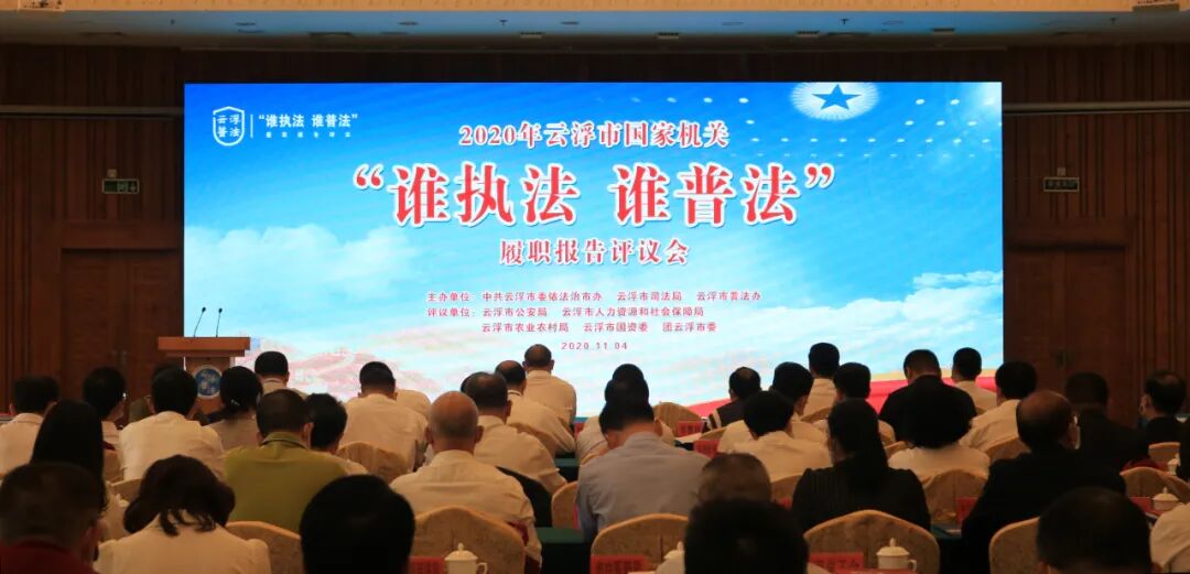 为深入贯彻落实党的十九大和十九届四中全会精神,贯彻落实习近平总书记全面依法治国新理念新思想新战略,进一步落实国家机关“谁执法谁普法”普法责任制,推动《中华人民共和国民法典》宣传及依法治市工作。11月4日上午,云浮市举行2020年云浮市国家机关“谁执法谁普法”履职评议报告会暨民法典学习宣传推进会。市委常委、政法委书记黄天生出席活动并致辞,市人大常委会副主任苏培芬,市政府副市长、市公安局局长李雄光,市政协副主席伍永胜等领导出席活动。市普法办主任、市司法局局长莫慧玲现场公布履职评议结果。市直和上级驻云浮有关单位领导,各县(市、区)司法局、普法办领导和有关工作人员共120多人参加活动。