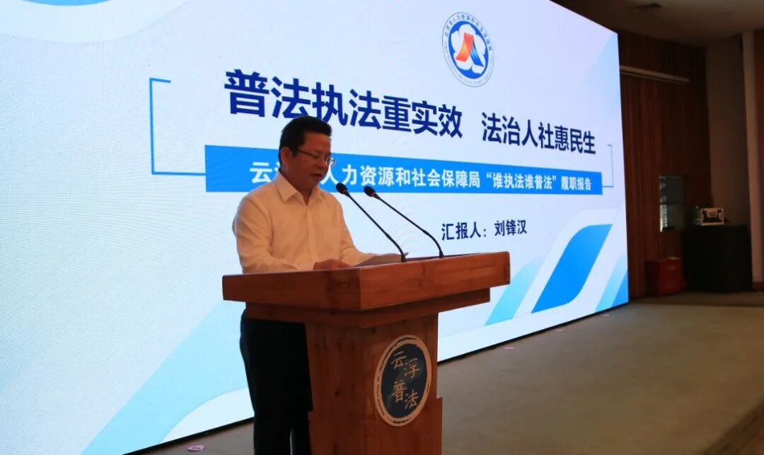 履职报告评议会上,市公安局、市人力资源和社会保障局、市农业农村局、市国资委、团市委等5个单位主要负责人分别就落实“谁执法谁普法”责任制作履职报告。各评议单位通过PPT、专题片、展板和实物现场展示普法工作成效。