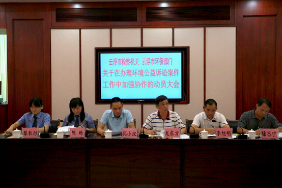 2016年10月18日上午,市(县、区)两级检察、环保部门在云浮市人民检察院就办理环境公益诉讼案件工作,维护公众环境权益,加强土壤污染防治等工作召开联席会议。