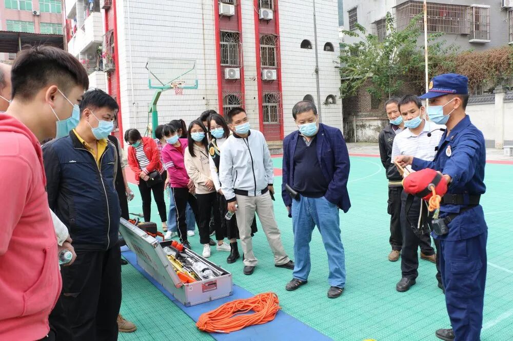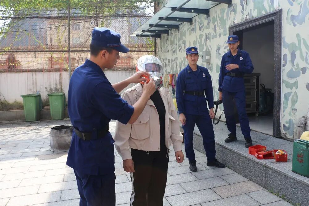 我们学习培训了应急救援能力;学习了灭火器的正确使用方法,学习了防毒面具的正确佩戴方式等消防器材的使用。期间消防救援大队人员还给我们展示了难度较高的救援技能。