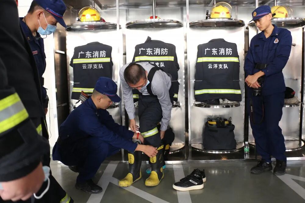 然后,消防救援大队人员带我们去了解各种消防设备及使用方法,期间还指导我们亲自体验。