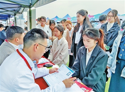 “近年来,学校高度重视学生就业,靶向精准发力,面对今年严峻的就业形势,采取多项举措访企拓岗促就业,希望同学们保持务实态度,先就业再择业确保顺利找到理想工作,为自己进入社会迈出坚实的第一步。”广东云浮中医药职业学院现场负责人说。