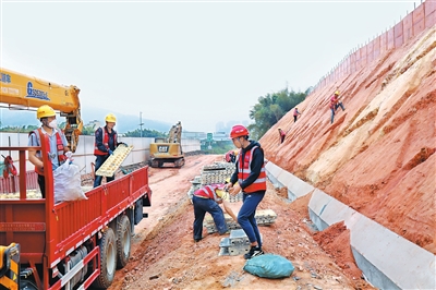 在广云高速改扩建工程3标段的施工现场,建设者们集中精力进行边坡加固防护工作,一派热火朝天的忙碌景象。项目相关负责人告诉记者,今年春节假期,该标段有22名管理人员、101名工人坚守岗位,为下一步施工工序做好准备。“春节期间主要施工的内容有几个边坡、关键的桥梁以及涵洞,目前我们整个标段完成了大概三分之一。在正月初八之前,所有管理人员全部到岗,正月初十,所有控制性工程全面复工,正月十二,所有工点全面复工。”广云高速改扩建项目3标段项目总工程师蒋明鹏说。