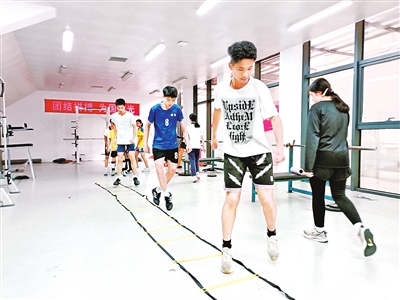 在云浮市体育公园曲棍球场,记者看到青少年运动员在教练员的指导下,正进行包括柔韧性、爆发力、对抗性和协调性在内的综合技巧训练。在训练室内,教练员根据运动员的年龄组别和个人特长,组织他们进行跳绳梯、交叉步、卧推及举重等力量训练。器材的碰撞声与运动员的汗水交织,勾勒出云浮青少年曲棍球运动员刻苦训练的生动画面。