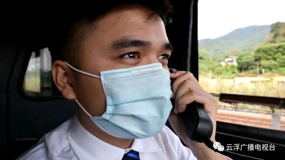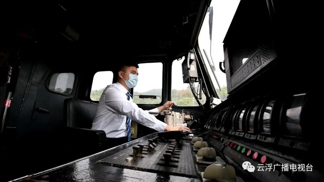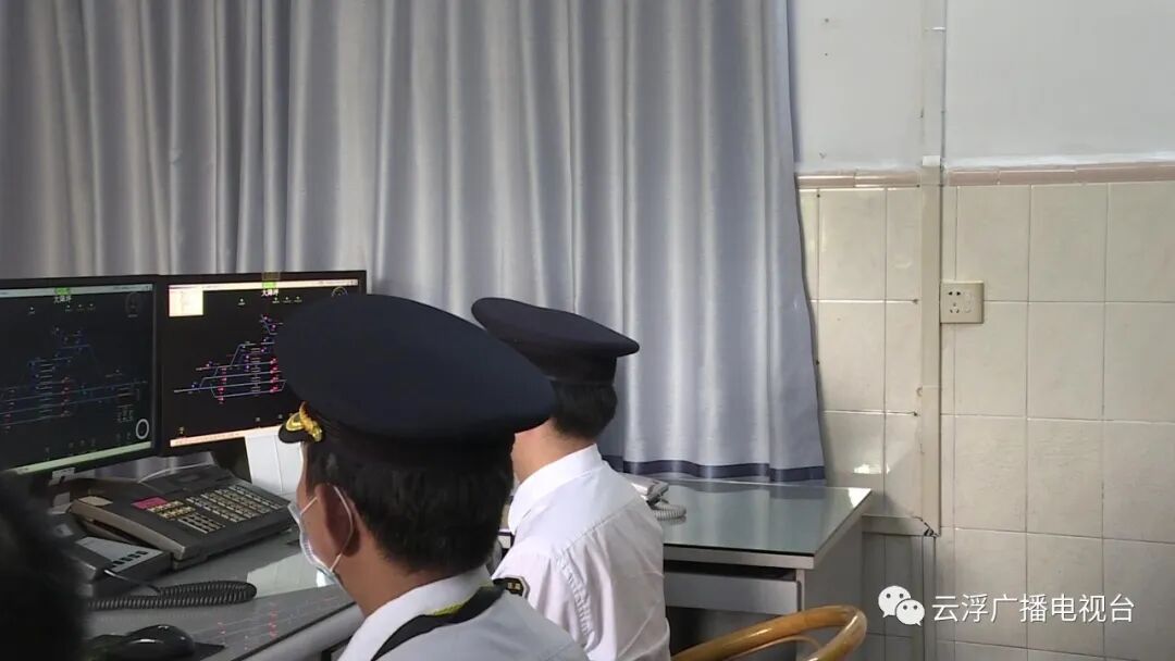 ▲云浮段铁路大降坪站车站值班员连线57002次列车,发出紧急调度指令。