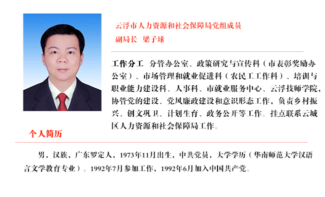 云浮市人力资源和社会保障局领导介绍
