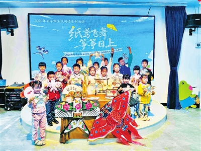当主持人讲解传统风筝4个步骤的制作方法后,台下亲子家庭跃跃欲试。主办方为每个亲子家庭准备了制作风筝的材料和工具,亲子家庭共同协作,完成风筝的制作。展示环节,小朋友们拿着自己动手制作的风筝上台合影,脸上流露出满满的成就感。