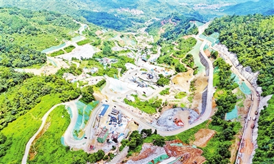冬日,走进新兴县太平镇水浪下厂村附近的山顶俯瞰,云浮水源山抽水蓄能电站上水库、下水库同步开挖的震撼景象尽收眼底。目前,两大库盆已现雏形,千名建设者加紧作业,百台机械同步开工。“我们电站装机容量1200兆瓦,安装4台300兆瓦可逆式水轮机组,目前正在开展枢纽工程,包括上、下水库、地下输水发电系统等的施工。主体工程进度完成8.57%,项目累计完成投资约16.77亿元。”云浮蓄能发电公司工程部相关负责人向记者介绍。