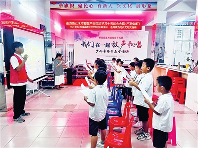 本报讯 (通讯员 张健珍 温铭榆)连日来,郁南县新时代文明实践中心、连滩镇新时代文明实践所联合多个单位,在镇新时代文明实践所组织云禾“粤趣”童声合唱团开展十五运会会歌《气势如虹》学习活动,以歌声传递体育激情,在全镇掀起“学唱会歌、喜迎盛会”的热潮。