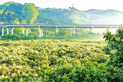 本报讯 (通讯员 张健珍) 进入3月以来,郁南县迎来无核黄皮花盛放期。在建城镇便民村的果园里,洁白如雪的无核黄皮花缀满枝头。晨曦初露时,花簇与朝霞相映生辉,勾勒出“日出花影动,满树缀琼瑶”的诗意画卷,吸引当地群众和游客到此记录春日胜景。